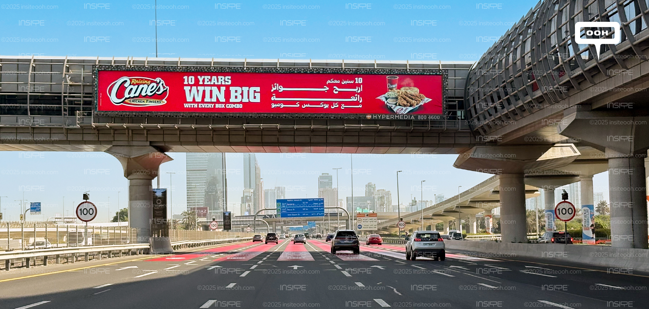 Raising Cane’s is running a multi-message outdoor campaign in Dubai that combines highlighting 10 anniversary in the UAE, the expansion announcement of opening a new branch at City Walk, a popular lifestyle hub in Dubai, and the customer incentive, which is a prize-based competition encouraging customers to buy the Box Combo to participate.