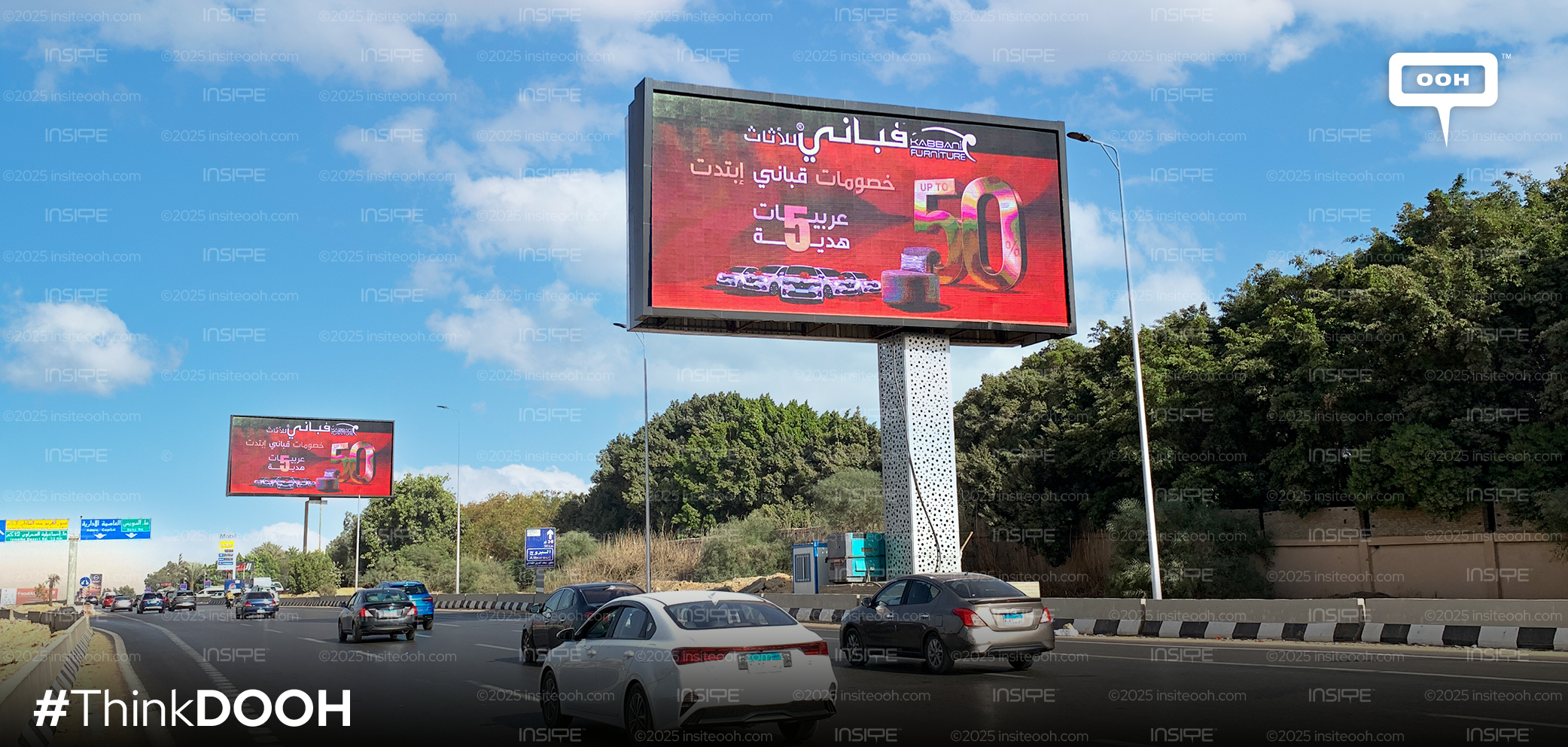 The leading name in Egyptian furnishings has launched a promotional OOH campaign across Greater Cairo to promote its "Up to 50% Discount.", The advertisement showcases a "purchase and win your car" promotion, highlighting Aman, a prominent Egyptian financial service, for easier financingThe campaign is a powerful demonstration of leveraging a broad media mix to achieve market saturation and drive consumer traffic during the most shopping season through high-visibility placements. Its message is the substantial discount that is clearly proclaimed "خصومات تصل لـ 50%"
