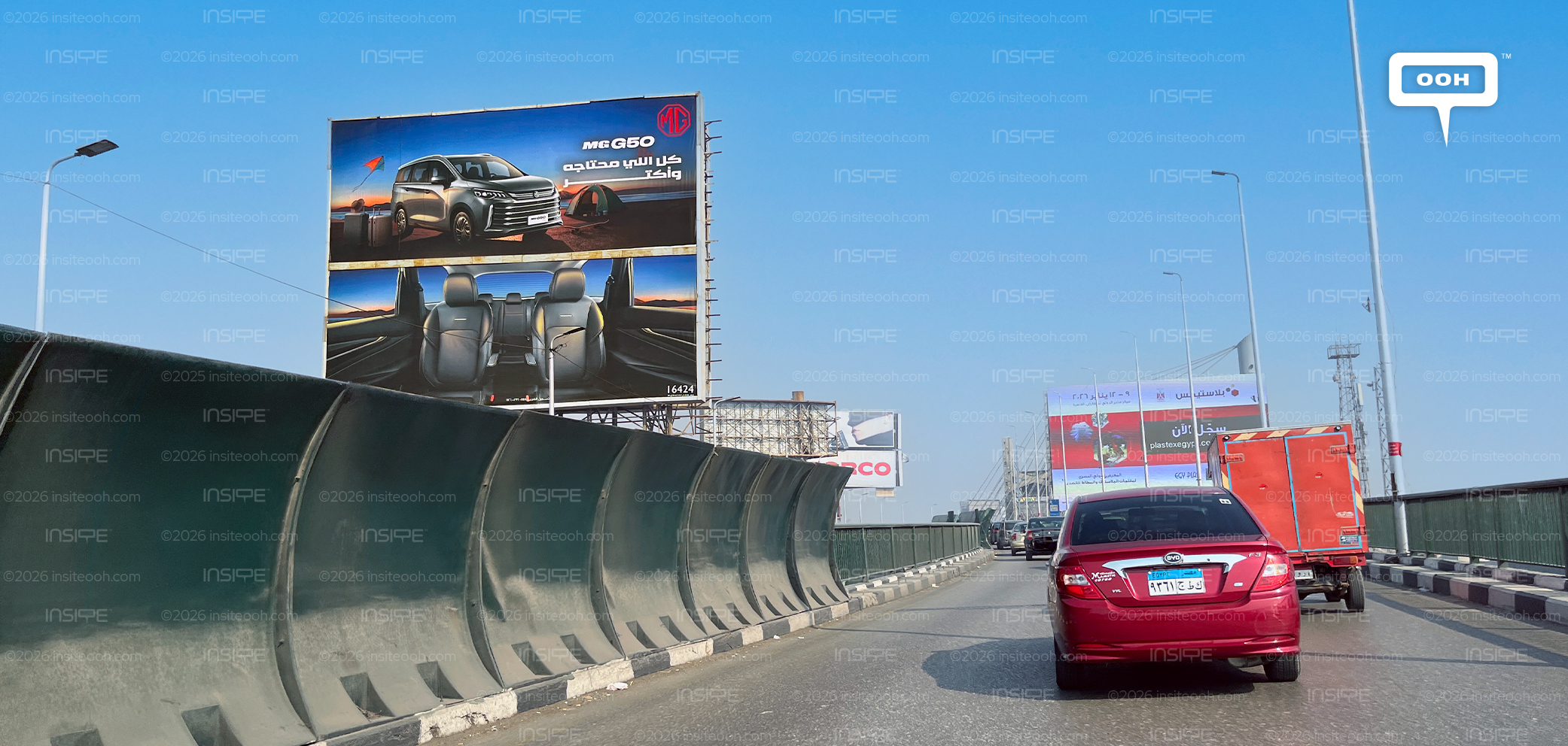 Another campaign ad spotlights the MG G50 in an outdoor camping escape, parked beside a tent and packed suitcases, with the beach stretching out ahead. The headline reads, “Everything you need and more.” Across Cairo’s billboards, the story continues inside the vehicle, highlighting the G50’s spacious, leather-trimmed interior, where comfort meets adventure.