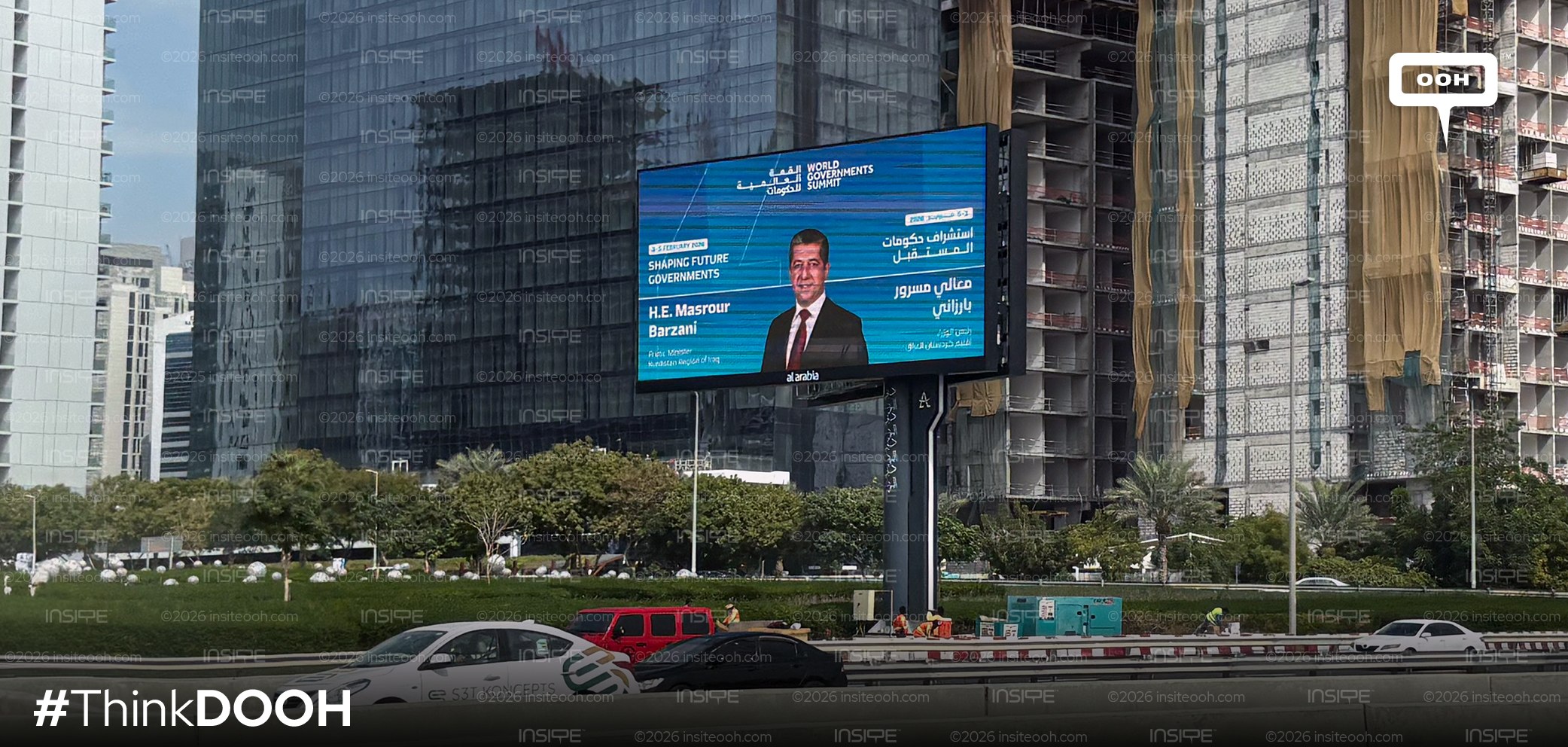 For an event of this magnitude, the World Government Organization went for an awareness-focused approach with its D/OOH strategy. Starting off with the formats, these saw a combination of digital screens and hoarding on strategically chosen motorways, ensuring the achievement of the awareness objective. Moving on to the visuals, the campaign went for a simple announcement on the bridge billboard, announcing the date of the event as well as the event’s tagline: Shaping Future Governments. The second visual announced the presence of H.E. Barzani, the prime minister of the Kurdistan region, amplifying the magnitude of the event further.