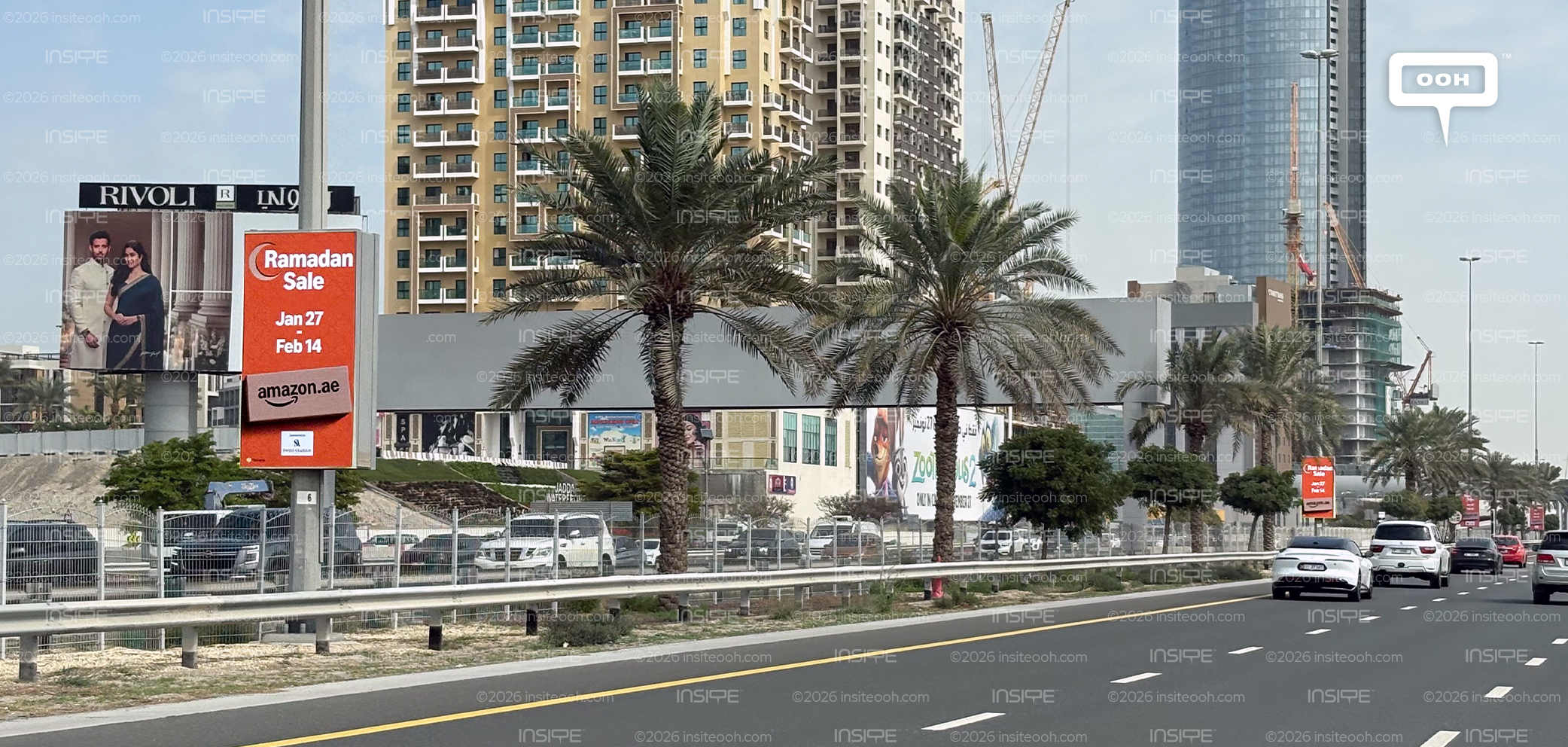 Following their last OOH ad, this campaign is spread across Dubai in a variety of bright red formats: long horizontal billboards, massive vertical screens, and highway-dominating sites that are impossible to ignore. The e-commerce communication is simple; Ramadan Sale, Jan 27 – Feb 14.
