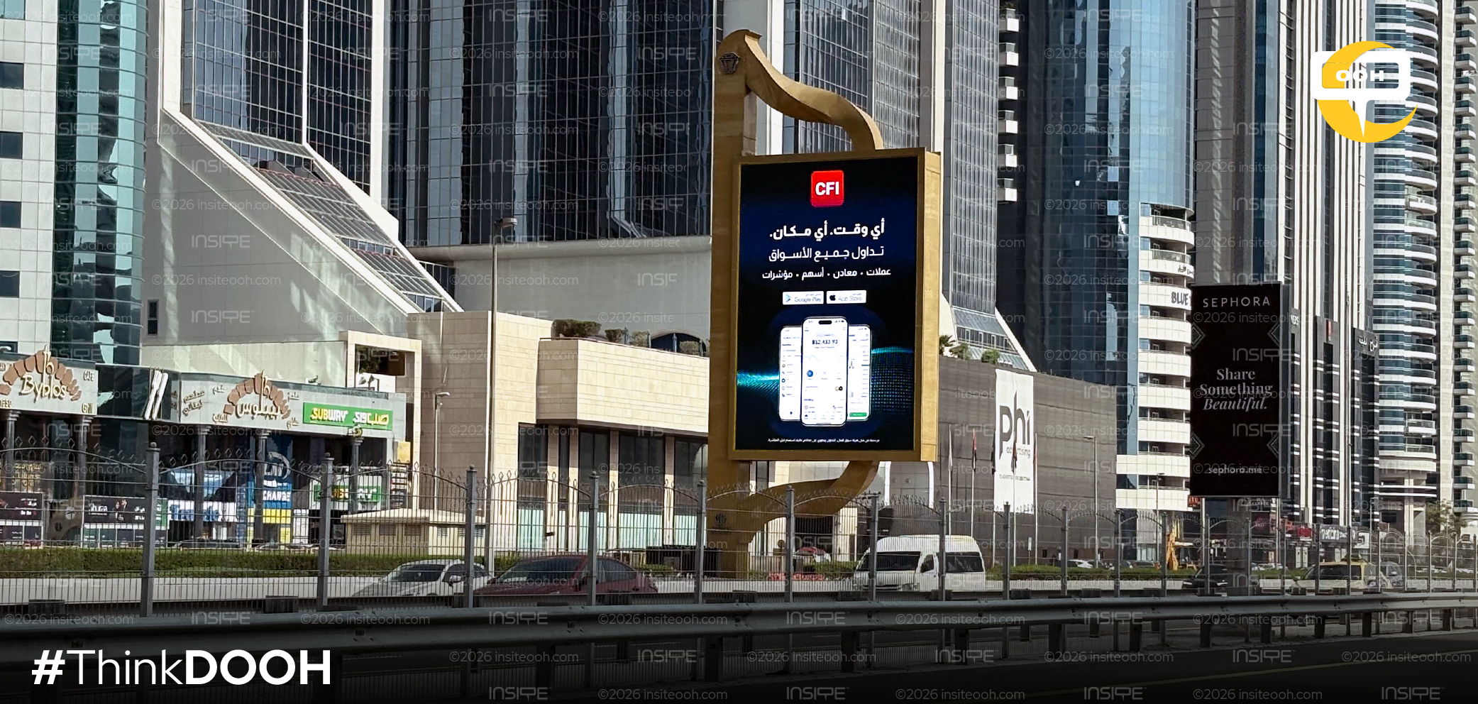 CFI places itself precisely in the middle of the journey, where it counts most, following their previous OOH appearance. The financial services company's most recent out-of-home campaign, which is visible on Dubai's main thoroughfares, focuses on high-impact billboard placements that practically span the daily commute. It's a calculated decision that reflects accessibility, the brand's central theme.