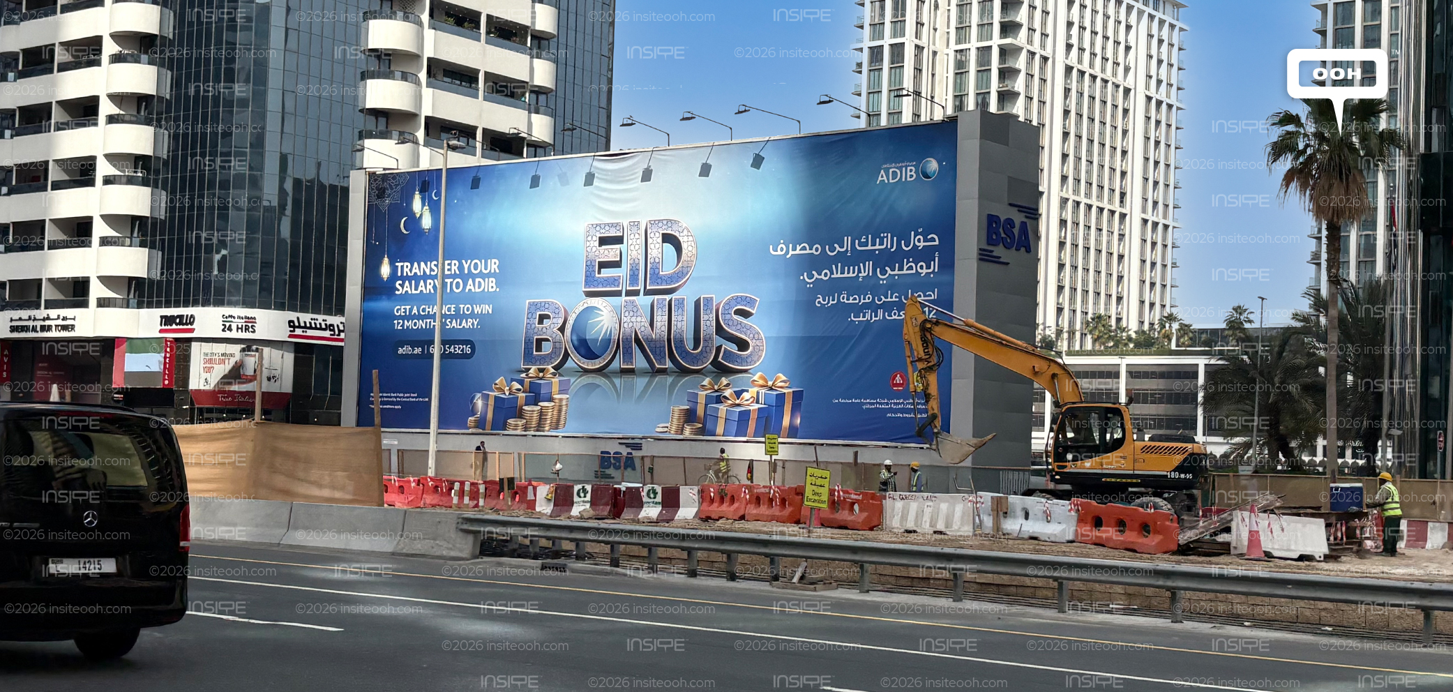 Beyond the monetary pull, the "Eid Bonus" narrative aligns the bank with the cultural values of generosity and community. For commuters navigating the city’s busiest thoroughfares, the message is clear: moving your payroll to ADIB isn't just a banking shift, it’s a gateway to life-changing liquidity. The scale of the hoarding format serves as a physical metaphor for the magnitude of the reward, reinforcing ADIB’s stature as a powerhouse in the Shari’a-compliant banking sector.