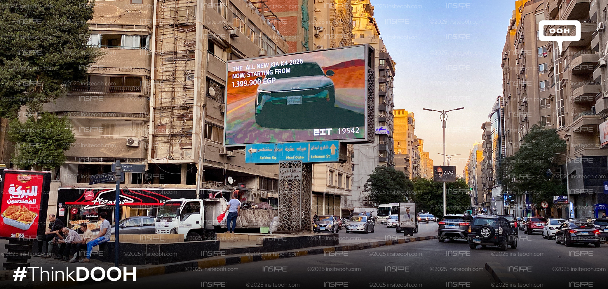 KIA Egypt’s latest digital OOH activation is hard to miss—literally. The all-new K4 2026 has taken over Cairo’s most strategic screens, headlining EIT's fresh campaign rollout with a sleek and futuristic look.